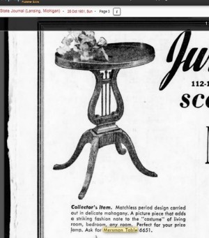 They have a Mersman 6651 solid mahogany harp base table, listed for $170 on Etsy: