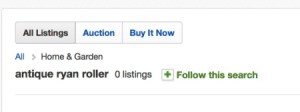 Then click "Follow this search" link and you can sent it up so that eBay will email you when items like yours are posted. You can create alerts for various search terms, like "antique roller" or whatever might help you determine your items value.