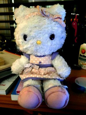 This is a Hello Kitty plush I got at a sketchy thrift store a few months ago. I've never been able to find what kind of plush she is, or if shes even official! I'm asking for any help I can get with recognizing her. She's one of my most favorites in my collection and I'd like to learn her worth, age, etc :)