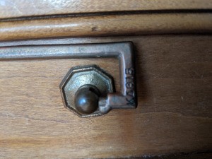Thanks for the info and additional picture. I am wondering if someone swapped out the hardware and used a Karges handle. The more I study your piece, I really don't think it has the line/design that Karges is known for. The handle is very simple and looks nice with the piece, but I do wander if it is not a replacement handle.
