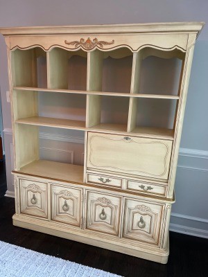 The name on the cabinet Lexington Furniture company by Dixie started to be used around 1986 to 1987. That gives you a rough idea how old this piece really is and when they changed the name of the company. At first I thought this would be listed under China cabinets but it is missing the silverware drawer that most o them have. This one is listed under display cabinets.