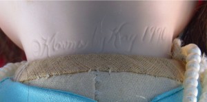 I believe you are asking us for the name of this doll. It does appear that the signature on the doll is Kathleen Hill and she has made the doll. However, the problem here is these dolls are mass-produced by the company and they can make thousands of them each year. It is almost impossible to find the name of this doll if you have lost the papers for the dolls or the box it came in. The only way you will ever find the name of this doll is to check listing on major sites like eBay or Esty to see if anyone ever lists this doll for sale.