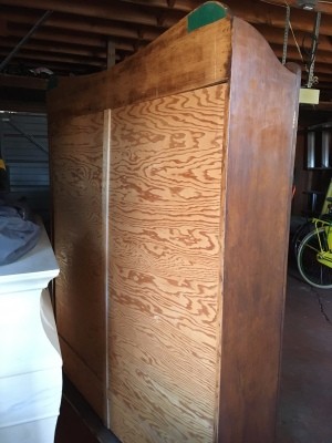 This almost looks like a cabinet that was used in a very old bake shop back in the early 1920s or so. They would make their pies and put them in cabinets like this. The back was opened so they could reach in and take out the pie. The doors had glass on them so the customers could look in and choose the pie they wanted. They had these lined up and also had other types of cabinets like this for fresh baked breads.