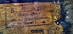 What I can make out is B. S (something) ade and then the 80 Paul Doumer (which is the address most likely of the store where it was sold as that is a street address in Paris.