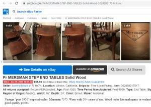 I'm looking for whatever information I can find on a Mersman side table 7495, including date of manufacture and estimated value.