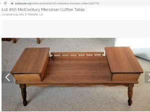 I think this is a MidCentury Mersman Coffee Table. Here is another Mersman Coffee Table, also with two not big boxes on the sides: estatesales.org/