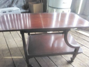 Does anyone know anything about this table?  It has wheels, but no handle to push it, so I don't think it is a tea trolley.  I bought an Imperial gate leg table and find lots of info on it, but nothing about this table.  I need help.