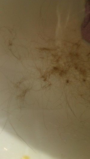Cap full of peroxide in your conditioner comb through. Then recondition your hair. Should solve the hair issue.