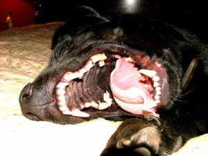 The attached picture is of my beloved Parker who passed away many years ago. He was a Black Lab / Rottweiler Mix and looked like a huge Black Lab, if you look at the roof of his mouth it's almost all black but you can see that it's not solid black.