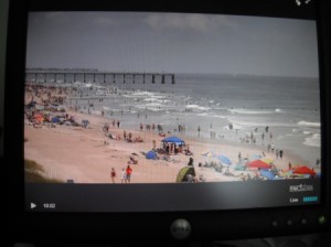 Photo Description At the top of the picture, you will see 2 triangles.  Click on this to get full screen.  To stop the motion, click on the X.  I learned that trick yesterday as I was looking at the website. I am posting pictures from the web cams at Kure Beach and Wrightsville Beach and also Rodanthe which is located on the outer banks.  The tide was high and the water was rough so not much beach showing there. Yesterday, we had a cold front to come through and it rained all day.  Evidently, it was great weather for surfing at Wrightsville Beach. I saw at least 20 surfers in the water at the same time. I just wanted to share this so you could also enjoy watching the weather and the action on our North Carolina coast. It should be more interesting when the weather warms up.