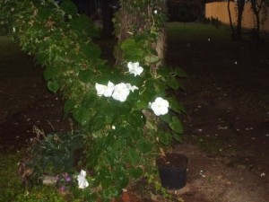 The scent of the moonflower vine bloom would probably be categorized as 'heady'. I believe it's essence would make an interesting perfume. It would have to be 'cleaned up' a bit, though. It is nice and heady, but muddled.
