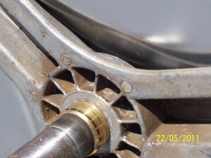 Even after the fastest spin small quantities of water will remain on the shaft and towards the centre of the spider. Any recesses in the spider close to the centre will aggravate this situation. This water will contain contaminants as detailed above. Should sufficient of these contaminants be present the pH of the mixture can, as evaporation takes place, rise to a level where corrosion will take place.
