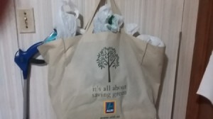 I shop at the grocery store where you have to bring your own shopping bags so therefore I'm not the grocery store cloth bag and is very large so I keep all the plastic bags in my grocery shopping bag and when I go to the grocery store I'll take the bag with me. I also use the plastic bags as small garbage bags in small trash cans.