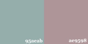 Aqua blues from intense for accent to like intensity for background. Also a lighter version of the dark brown for details for trim.
