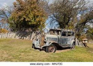 This old car has been sitting in a field next to our old downtown area. Rumor has it that it belonged to Bonnie and Clyde, and when it ran out of gas, they just left it.