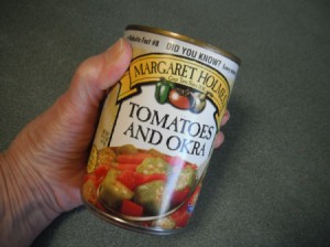 I love stewed okra but had never tried tomatoes and okra. I saw this can of Margaret Holmes Tomatoes and Okra in the grocery store and decided I would try it for lunch. It's 3 servings per can but it was so good, I ate the whole can full which was only 105 calories.