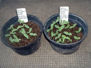 I randomly scooped seed from the floaters collection, counted out twenty and planted them in a soil filled pan. The pan was labeled accordingly. Next, I randomly scooped seed from the sinkers collection, counted out twenty and planted them in a soil filled pan. The pan was labeled accordingly.