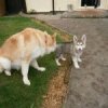 Brownie is &frac; Siberian husky from her daddy and her mom is German Shepard & American Bulldog. Not only are we having problems with her eating everything from paper to bras to electrical cords to my 9 year old Pomeranian, but the house training is going very badly too. We can take her out for an hour and play with her, giver her treats when she is good outside and praise her like crazy for being good. As soon as we come inside she goes into the kitchen and potties or poos on the floor!
