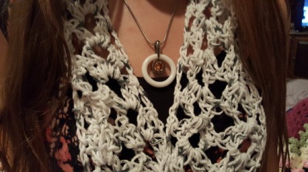 I love crocheting scarves! Just because it isn't winter, doesn't make me want to stop either. :) This is a light and airy cotton scarf that would be a great complement to your outfit even on summer days. You can make it in an hour or less. Have fun!