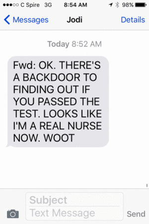 I received a message from my daughter Angela last night and she passed her State nursing board exam and she said she is a real nurse now. She said it would be nice to be able to wear a blue scrub set instead of a green scrub set, the green indicated nurse extern and the navy blue indicates a registered nurse.