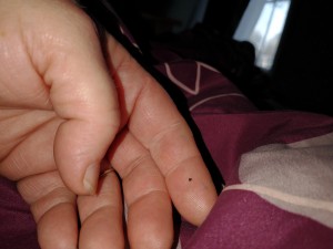 When I go to bed I'm no longer putting a duvet or sheet over me so I can see what the back sheet looks like in the morning. It's usually got white specks all the sheet, which I'm presuming are eggs. Once in a while I'm woken by something biting my legs and when I look there is one of this white spots under my leg or foot.