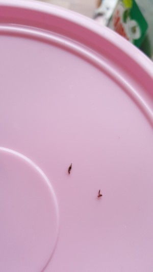 I learned from the last times that the fastest way to get ride of those strange bugs was moping! In the beginning I took that mop to every place where I went and made sure that I mopped every step I made. I was in my bathroom and I have those tiles with cement between them. And they will hook them into the cement... I used washing machine cleaner with lemon, and they came loose!! Most of them dead!