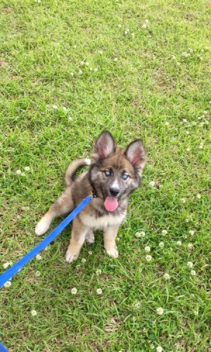 This is my 12 week old German Shepherd/Husky Mix, Atlas. He is very sweet and does commands, but only when he knows he will get a reward. He is very smart and catches onto new commands very quickly. I taught him how to sit, lay down, shake, high-five, and roll over within the first week of having him (at 8 weeks old).