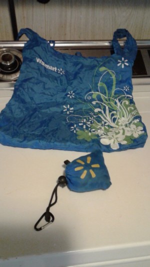 Great idea about adding the extra bag. I usually fold mine all together & put them into the biggest one...just to keep track of them. But then sometimes I'd forget to bring them. Sooo...I found a small nylon bag at Walmart that rolls up inside itself that I can just toss into my purse. I keep two of these in my purse all the time. No more worries about forgetting the bags. These are awesome bags, but they're getting hard to find, so we might have to make our own soon!