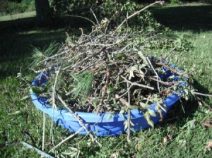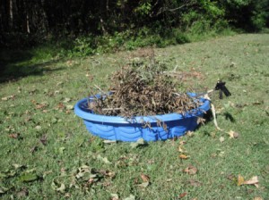 To clean up our yard, I use a small baby pool. A large one works even better, but for my use, the small one works well and fits nicely under our screen porch where it makes a good cover for my wagon.