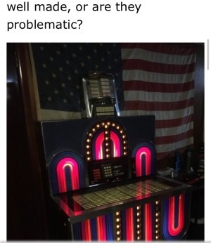 Is your model in the photo? But the photo does not show a 1963 Seeburg LPC1 jukebox. There is a 1977 Seeburg STD-4 Mardi Gras Vinyl Jukebox Coin-Op King in the photo.