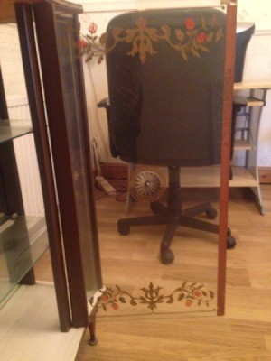 I still believe you should take these pics to antique dealers in your city (along with measurements and any information you have as to where it came from) as most likely it came from somewhere in your area and these dealers will maybe know the maker.