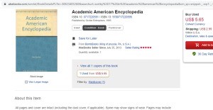 A photo of your encyclopedia would be very helpful. Most likely the title is Academic American Encyclopedia, Published by Grolier Enterprises, published in 1995-02-01, hardcover. This is the twenty-one volume encyclopedia with 32,000 entries and more than 16,000 illustrations.