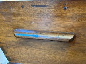 Your dough box table has very beautiful graceful legs. So I think your dough box table was made in the late 18th - early 19th century.