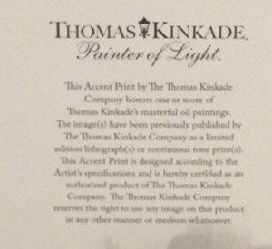 I found two framed Accent Prints by Thomas Kinkade