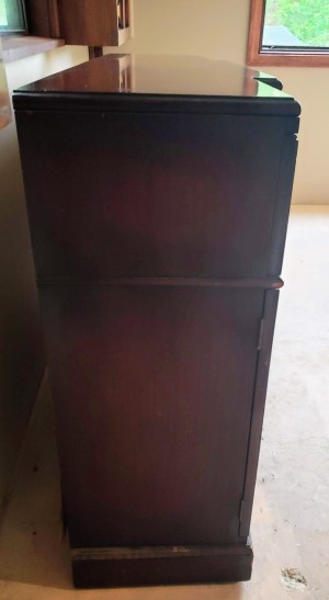 Attached are more images. It has no maker name on it. I discovered the top drawer can double as a small desk with cubbies. I discovered the back is not in good condition and made of thin wood. Otherwise the piece is sturdy. I am located in CT, border of NY. Thanks for everyone's help! I couldn't find where to add these to photos to the original post therefore I am adding them to a response.