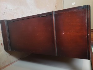 Please post a clear full front & full back picture (if possible) of the complete piece. Pictures of the side/end and picture of open compartments would help.