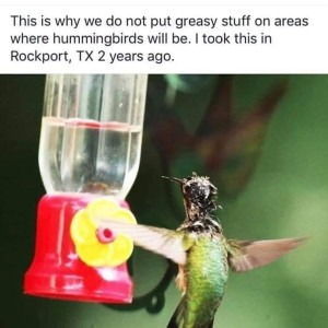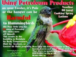 Please DO NOT USE VASELINE OR OIL NEAR HUMMINGBIRDS FEEDERS!