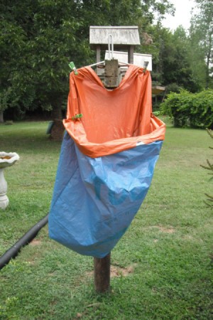 When I start another bag in the container, I use the one I picked up litter in on that day. The next day I start out with a new bag and when I get back home, I empty the trash into the trash bag I have in the container. I take the empty bag and rinse it out with the hose and hang it up to dry. Afterwards, it is clean and ready to use again the next day.