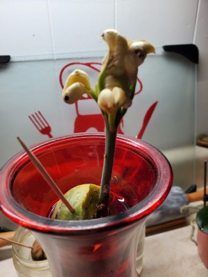 My avocado seed never grew leaves, but this flower is what grew! The plant is about 4-5 inches. Is it a defect. I'm so curious to see what it will do next.