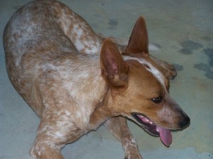 Your darling pup looks like a Red Australian Cattledog. Those beautiful spots will become darker with age and that white patch on his head is called a Bentley mark.