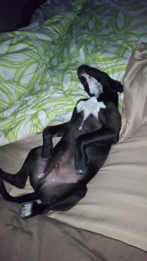 I have a black version of your puppy who sleeps the same way. I rescued him from the humane society of the white mountains