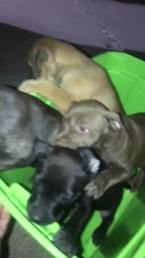 I am not an expert, just love fur kids and know many, many. I do see bully breed in your pup, but there may be some lab or hound in there too as the ears aren't quite bully ears. The color may be, or could be chocolate lab.