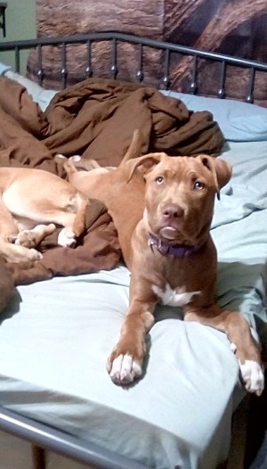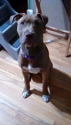 Wanting to know if anyone knows what she may be mixed with? I know she is part pit but with the chocolate color, she must be a mix. The white and tan one I had tested and he is a pit staff mix. But the chocolate one I am not sure.