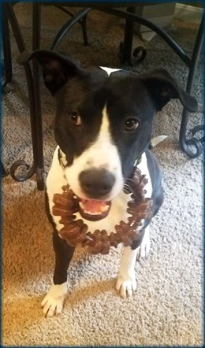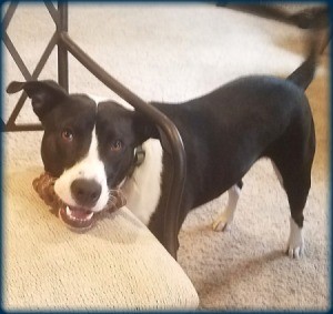 He was a rescue. He came to us from an awesome organization. He was delivered with all of his shots, was neutered, heartworm tested, and microchipped! He's about 16 months old now. He came to us with a lot of behavioural issues (luckily no aggression) and has been in obedience class.