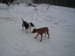 If it has a broad back and bum it is Pit Bull if it has a thin back end. It is Boxer and Pit Bull.. hope that helps I know I own a Pit Bull have owned like 3 of them and Boxer they are both Purebreds and wonderful loving puppies! :) Even though they are 7 and 5 years old they are my babies! Picture below when it was snowing :)