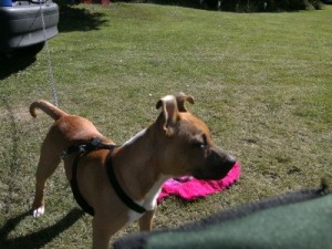 I believe your puppy does indeed have some pit bull in his heritage, and possibly some boxer also. Search for pictures of pit bulls online to help you figure things out.