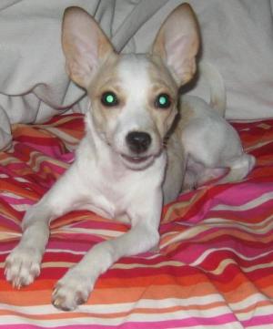 What does my dog look like? One of my dogs, I think is a Chihuahua Rat Terrier mix. He is loyal, my shadow, sweet, yet a bully to my other dogs and oh, so puppyish and lovable.