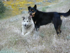 I live in a rural area on 28 acres near Tehachapi, CA. Over time I've taken in and have 17 adult dogs that were dumped in our canyon, including 9 chow mixes, all related, that I took in about 3 years ago when someone died. They are my joy in life and were like surprise packages where their essence unfolded over time. The pic is of Shialoa (L) and Diablo (R), both male and best friends. I'm pretty sure Diablo belonged to a person of color. After a year, he finally let me touch his muzzle when we go for our evening walk. However, when a young lady of color came over, he went right to her. Hmm.