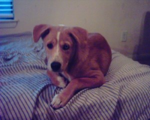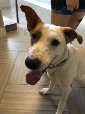 Don't know what breed your dog is, but we just adopted our Stella 4 days ago and I have been searching like crazy to try and figure out what breed she is. Her adoption paperwork said pointer mix, but after doing a lot of Googling I think that she probably has a good amount of Basenji in her.
