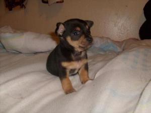 That is definatly a chaweenie. I have a pic of a one. He looks exactly like yours. a chaweenie is a doberman (weenier dog) and a chihuahua mix. hope this helps